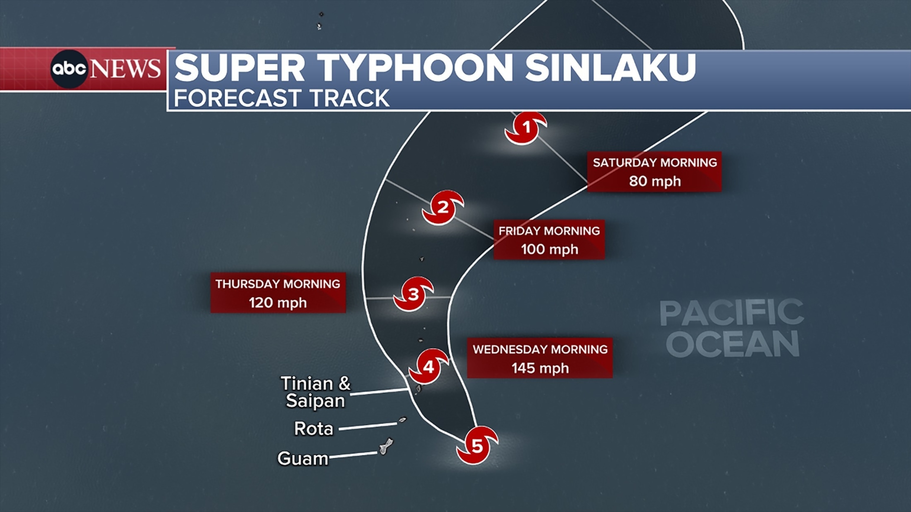 As of the latest forecast from the Joint Typhoon Warning Center, Sinlaku is then expected to track near or over the islands of Tinian and Saipan -- among the principal islands of the U.S. Commonwealth of the Northern Mariana Islands -- Tuesday night local time. It is expected to cross as a Category 4 or 5 storm, according to the NWS.